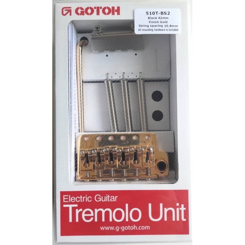 El trémolo 510T BS2 es un diseño de alta funcionalidad. Cuenta con una resistente placa de Acero Cromo-Molibdeno y 6 pivotes. El sistema FTS de diseño propio de Gotoh evita que las cuerdas toquen las placa y mejora sustancialmente la capacidad de retener la entonación despúes de la acción del trémolo.  El bloque es de acero y las monturas de bronce. lo cual le da gran resonancia y sustain. Una gran mejora funcional y de diseño, sin duda.