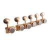 No más desafinadas !!. Producto del fino maquinado y pulido de  Gotoh Japón, está maquinaria se considera entre las mejores. Cuenta con clavijas  estilo Oval  dorado muy usadas en guitarras modernas. El encasillado es de acero forjado y lubricado sellado.  Para guitarras con cabezales 6 en Línea . Requiere hoyos de 8.8mm o 11/32".  Incluye tornillos para su instalación.