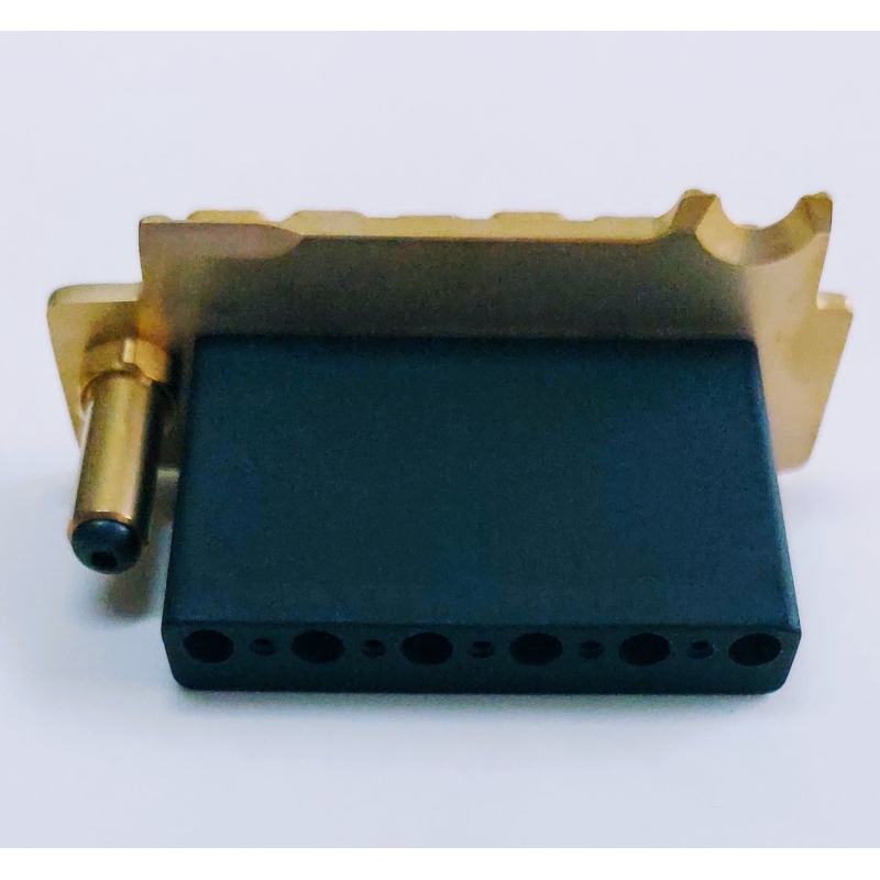 Modelos Premium VS100N de Puente Wilkinson hecho en Japón por Gotoh en color Dorado Satinado. De 2 pivotes (2 postes). La placa base está hecha con acero endurecido, con el sistema de postes patentado Stud Lock. Las monturas corren po la placa con alinecación precisa y gran estabilidad. La distancia entre postes es de 2 3/16" (56.8mm). La distancia entre 2 cuerdas es de 10.8mm. Ver la gráfica anexa para las medidas del set.
