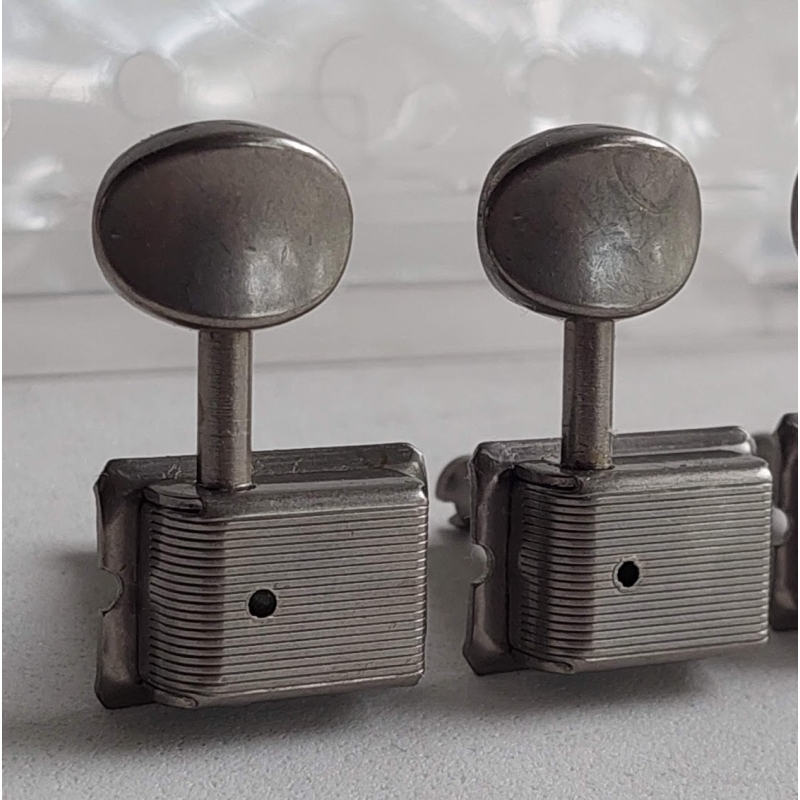 Maquinaria Gotoh Serie Relic 6 en línea, modelo SD91 , Clásico botón Niquelado Oval. Esta maquinaria es muy usada en guitarras Fender modelos Stratocaster, Telecaster, Mustang, Jaguar, Jazzmaster, Cort, y similares..Los Bushings son de 8.8mm. Incluye todo lo necesario para su instalación.