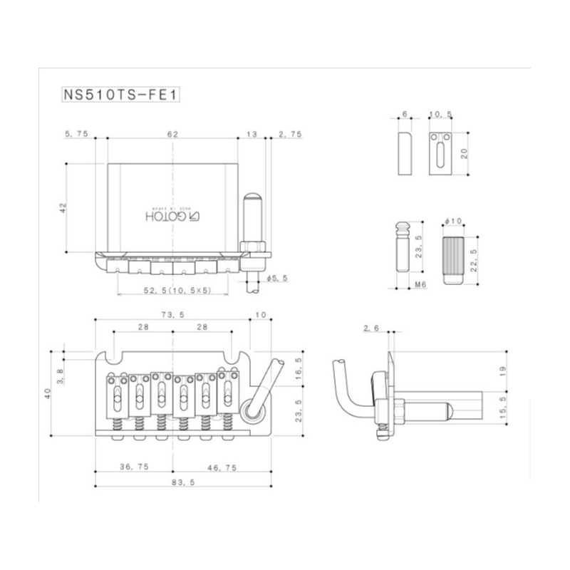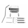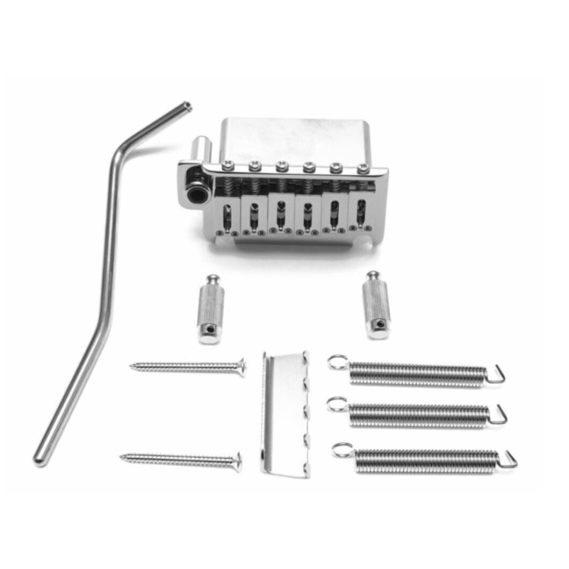 Trémolo Cromado Gotoh de la serie 510 de 2 pivotes, especial para Guitarras Stratocaster modelos American Standard, American Vintage, Squire, Made in Mexico (MIM) y otras de su tipo, distancia entre cuerdas 10.5mm. Está fabricado con placa y Monturas de aleación de Acero, Chromium y Molibdeno, lo que constituye una funcionalidad mejorada y además innova en el mecanismo de retorno a la tonalidad tras el uso de la palanca manteniendo la afinación de la guitarra. Además aporta gran resonancia y sustain. Incluye tornillos, resortes, palanca y todo para su instalación.