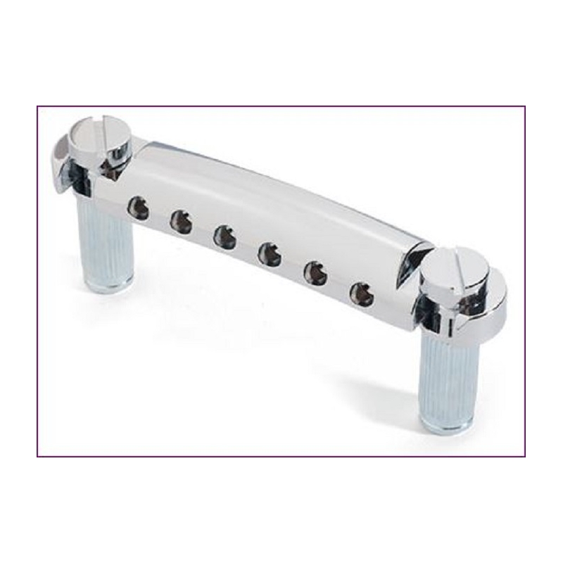 Tiracuerdas  (Tailpiece)  manufacturado por Gotoh con materiales sólidos y muy durables. Para Guitarras Epiphone y similares. Su terminado es cromado  brillante fino.  La distancia de entrepostes es de 81.8 mm de mitad a mitad de las ranuras sujeta postes. Para guitarras Les paul y otras de su tipo. Incluye postes y sockets para su instalación de medidas métricas tipo Epiphone y otras ..