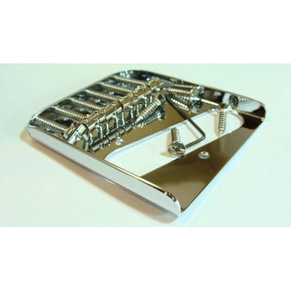 Puente vintage manufacturado sobre una placa de acero estampado con un terminado brillante en cromo. Con seis octavadores niquelados para una afinación individual.  Una reedición del puente de la guitarra Telecaster de los años 70´s. Incluye tornillos de acero cromado para su instalación. !!Simplemente lucidor y funcional!!