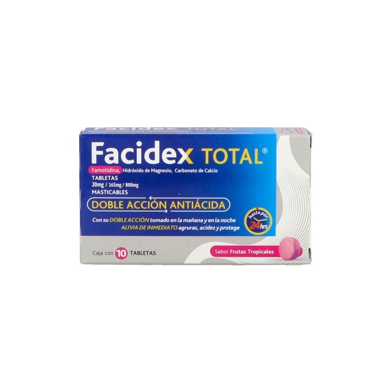 TOTAL FACIDEX (FAMOTIDINE, MAGNESIUM HYDROXIDE, CALCIUM CARBONATE) 10 CHEWABLE TABLETS 20MG / 165MG / 800MG