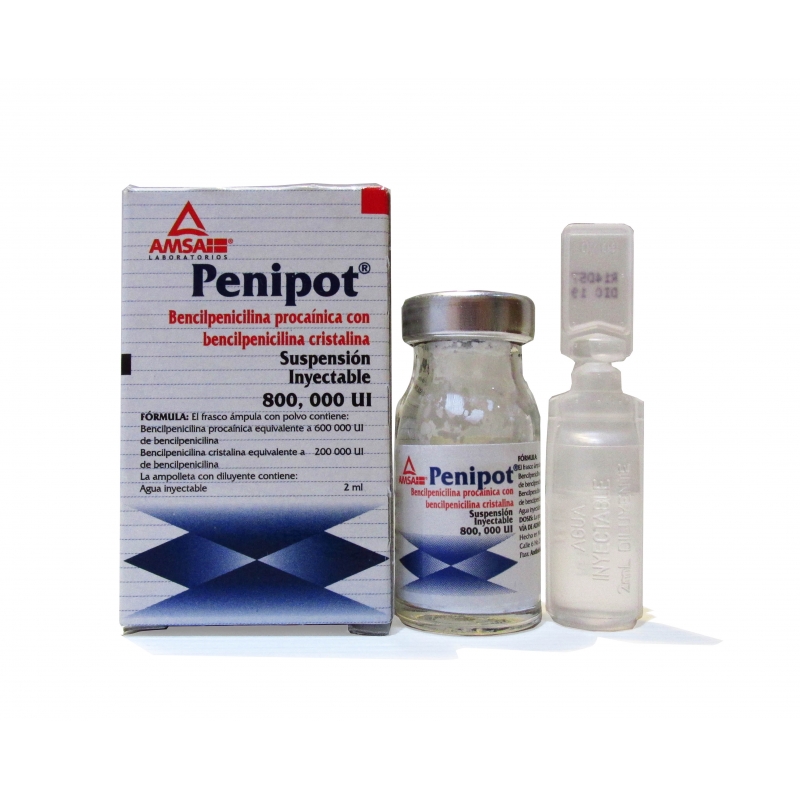 PENIPOT (BENCILPENICILINA PROCAINICA/BENCILPENICILINA CRISTALINA) SOL INY 800 000 U.I.