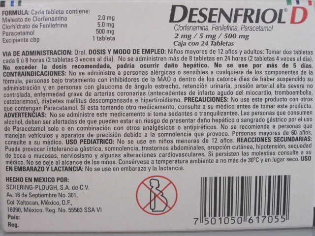 Comentarios y calificaciones: DESENFRIOL D (CLORFENAMINA, FENILEFRINA, PARACETAMOL) 2MG/5MG/500MG 24TAB