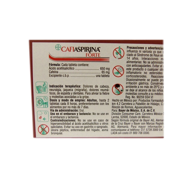 Sustancia activa: Acido Acetilsalicilico/Cafeina