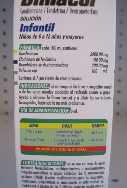 - Sustancia activa: Clorfenamina, Fenilefrina, Guaifenesina, Dextrometorfano
