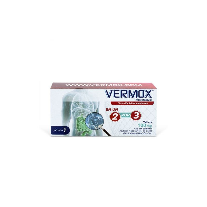 VERMOX (Mebendazol) 100mg 6 tabletas