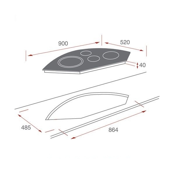 - Medidas para instalaci贸n (Ancho x Profundidad x Alto): 864 x 40 x 485 mm